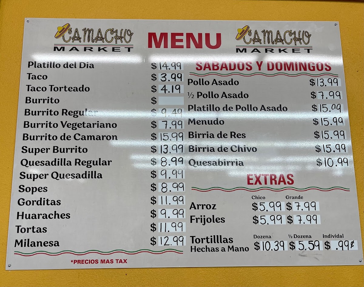 Camacho Market Menu